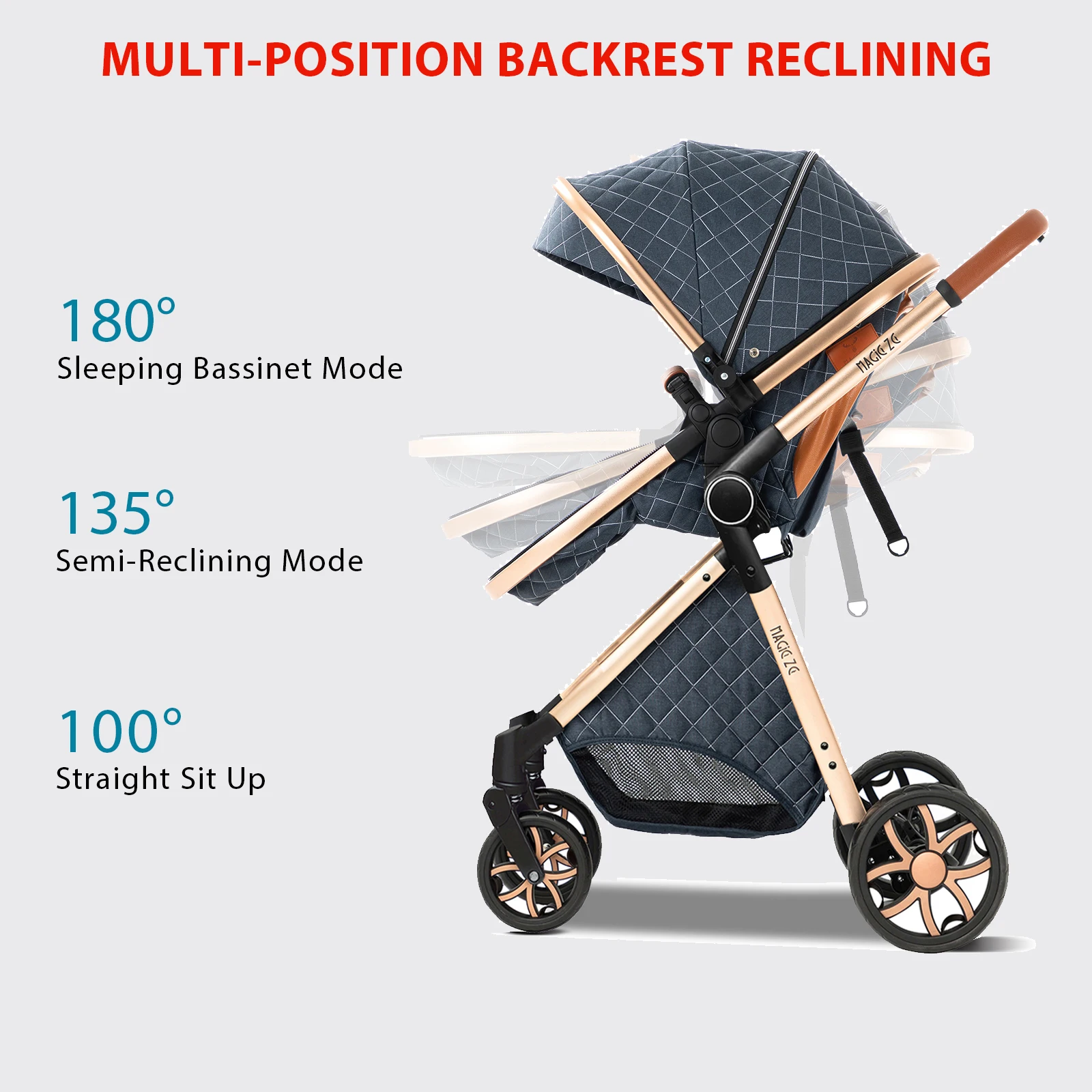 Poussette bébé 3-en-1 avec siège auto et nacelle – Légère, pliable à une main, tout-terrain
